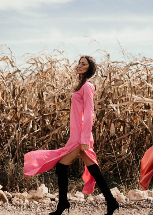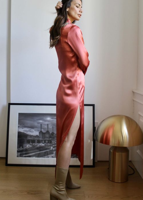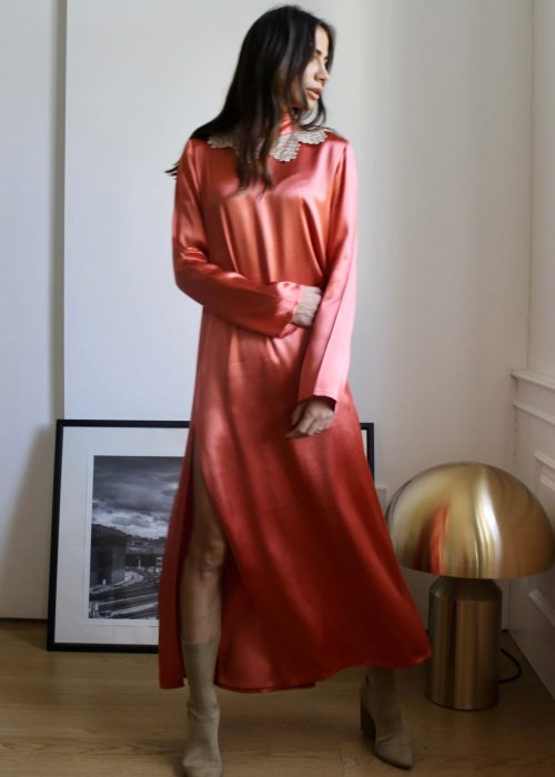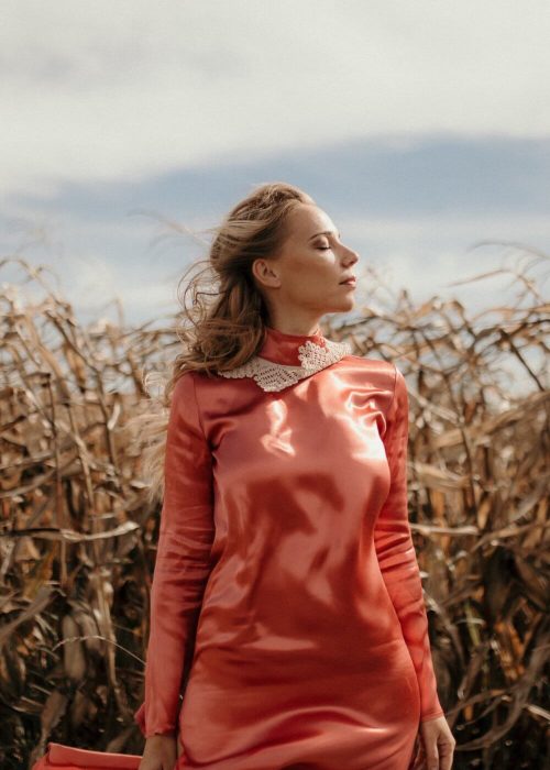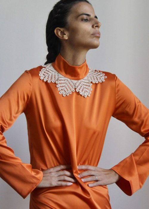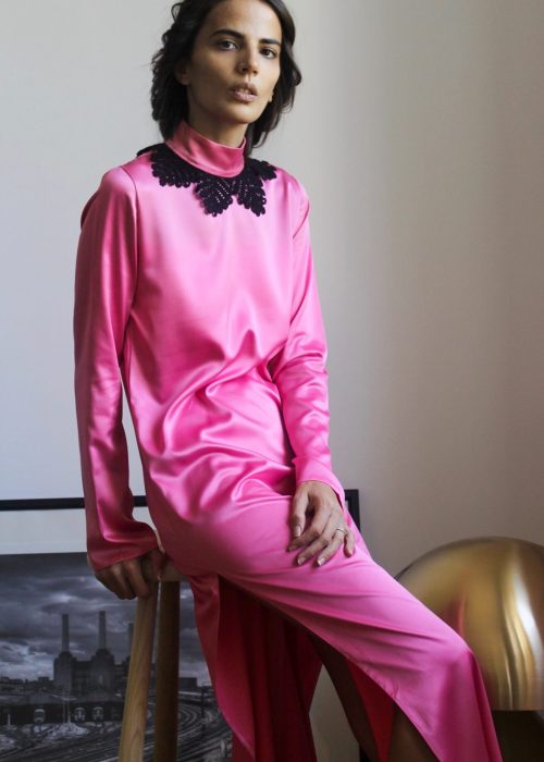 STIL DR0030: Samo sa odabirom cipela možete izgledati seksi ili konzervativno u ovoj haljini. Ručno rađeni ovratnik daje „statement“ bezvremenskog glamura.