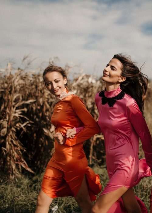 Svijetlo narančasta i roza: 80% viskoza, 15% poliester, 5% elastin, detalj: 100% pamuk